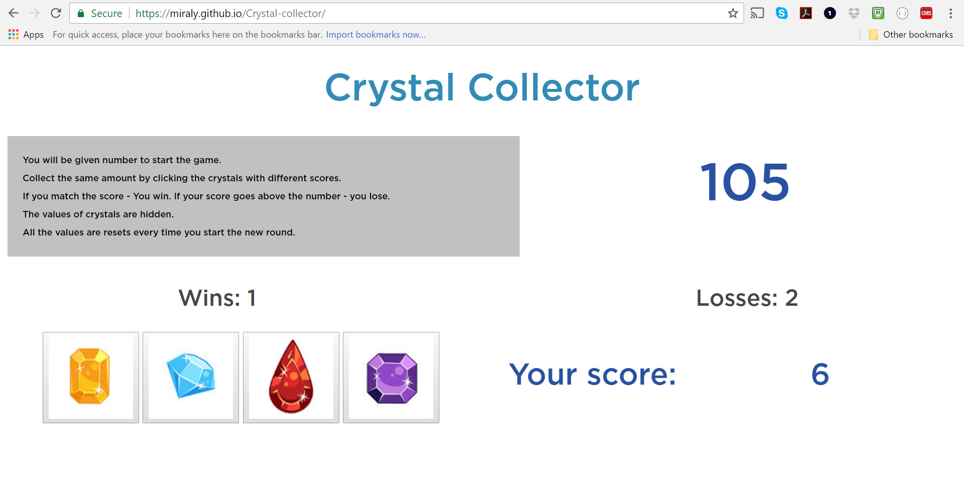 Web-based game "Crystal-collector". HTML, CSS, JavaScript, JQuery.